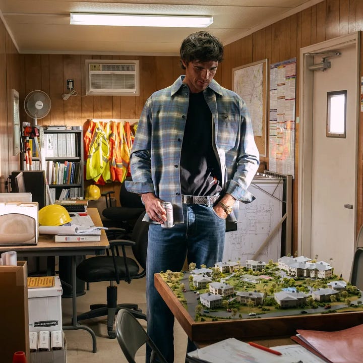 Jacob’ın üstünde gördüğümüz, süper popüler (Kate Moss’la ölümsüzleşen) Bottega gömlek bence iyi bir styling/kostüm hamlesi değil. Eğer dizide epey pahalı Bottega’ları satın alabileceğine dair bir kurgu varsa, o ayrı. Modaevleri tarafından sağlanan dolaplar hep bir karakter inşasına hizmet ediyordu. (Raf Simons, I am Love - Jonathan Anderson, Challengers - Nicolas Ghesquière, Irma Vep). Şu an için bildiğimiz kadarıyla Nate Jacobs’ın Zara ya da Bottega giyip şantiyeye gitmesi arasında bir fark yok. Yani Bottega tarafından sağlanan gömleğe Bottega muamelesi yapılmayacaksa da…