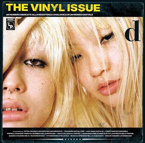 La Repubblica’nın eki d’nin yeni sayısı “the vinyl issue”. sayının temasıyla uyum içerisinde derginin formatı kare olarak hazırlanmış bu kez. hikaye petra collins imzalı, (og euphoria karakter posterleri yaratıcısı)