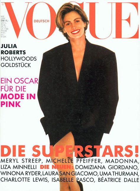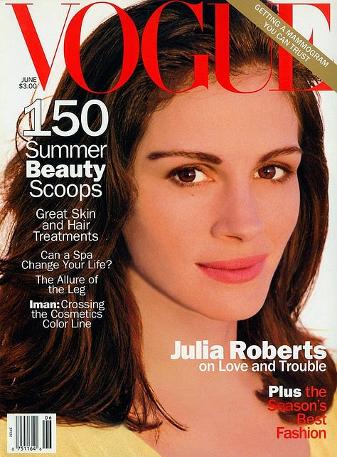 Ve Julia Roberts. Bu kapak hakkında pozitif/negatif konuşacak çok şey var. Ama öncelikle şunu söyleyeyim. “OMG GIRL, Julia Roberts kapağı drop ettiğinde NE YAPIYORDUN?” gibi bir soru sorduracak kadar ikonik değil. Ama Roberts’ın kariyerindeki sadece üçüncü Vogue kapağı. (Biri 91, diğeri 94, ve biri USA, diğeri Almanya) Bu da aslında yeteri ölçüde ikonik olmasını sağlıyor. Sadece birkaç yıl önce ilk kez Cannes’a geldiğini söylediğinde de çok şaşırmıştım.
