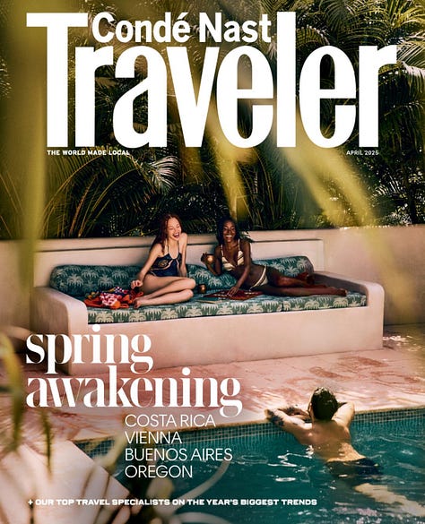 Dünyanın en cool seyahat dergisi olmak zorundayken shutterstock-ass fotoğraflarla kapak yapan Conde Nast Traveller’ın görkemli düşüşü hakkında makale de yazmak isterdim.