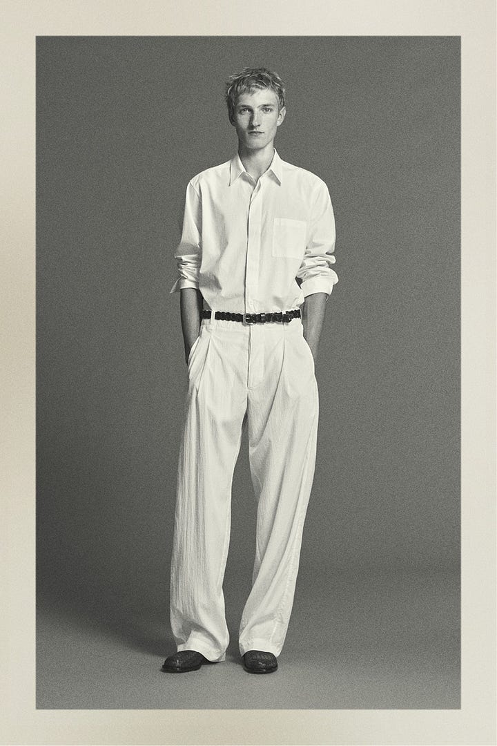 Bir başka not. Geçen hafta mesela Celine defilesinde övgünün çoğunu Brian Molloy topladı. Molloy aynı zamanda The Row’u da style eden kişi. The Row SS 26 lookbook’unda aşağıda soldaki look’u gördüğümde arkadaşlarımın dm’lerine çöküp şöyle giyinmek istiyorum dediğimi hatırlıyorum. Yeni Celine de The Row da tekil ürünlerden çok kendinizi nasıl göstermek istediğinizle alakalı. Özellikle son sezonlarda Miu Miu’da Lotta Volkova’nın yaptığı gibi.