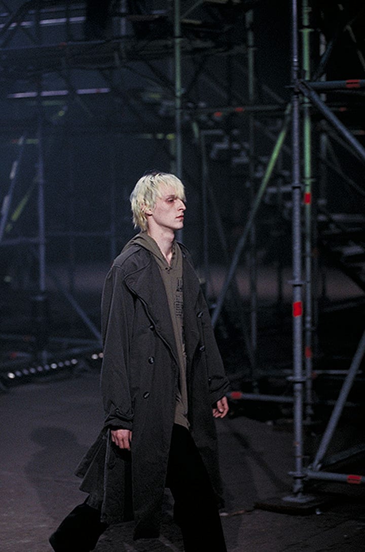 duygusal ticaret, bedensel dışavurum, ve queer arzuların peşinde kırılganlıkla güç arasında gidip gelmek… Tim Blanks de o zamanki Dior Homme koleksiyonunu şöyle anlatıyor.