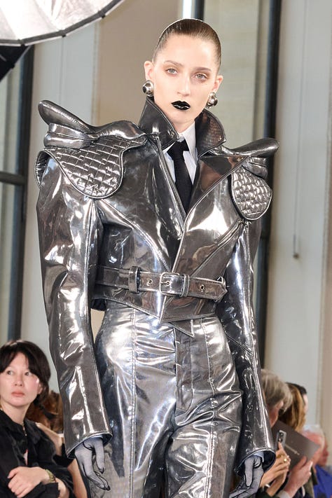 couture’u ikiye ayrılabiliriz. flamboyant bir dramatiklik, minimal ve duygusal bir dramatiklik. viktor & rolf, robert wun, giam valli ilk kategoride. more is more. drag race’in moda projeleri gibi. hacimli kiyafetler. glenn’in maison margiela’sı ya da demna’nın koleksiyonu ikincisinde, soft power.