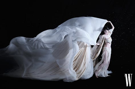 Tabii ki LESLIE ZHANG!!!! Masal demişken W Magazine China’nın Snow White hikayesi giyilebilir kıyafetler gördüğümüz podyum ve bunun dergilerdeki yansıması olarak hayal kurdurmayan moda savını çürütmeye gelmiş gibi.