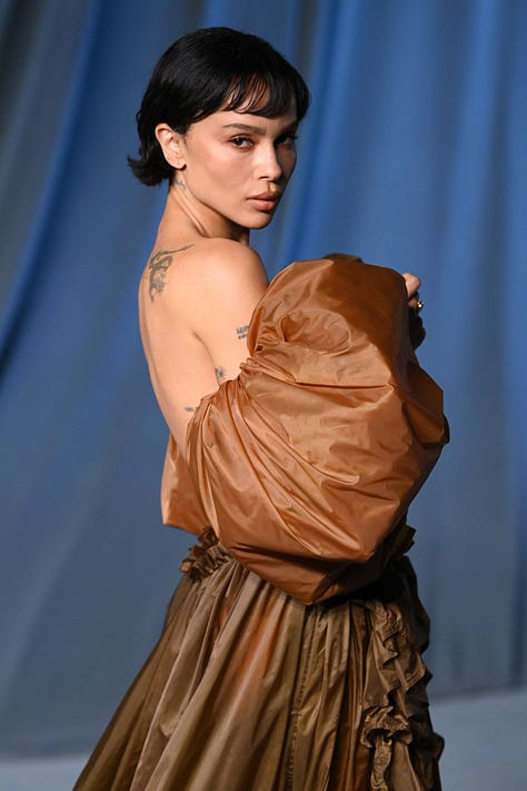 Dün LA’de Academy Gala vardı. Ayo Edebiri, pek tabii Chanel’le. Ve yine çok güzeldi. Emily Ratajkowksi, Duran Lantink’in Gaultier’i ile. Defiledeki ender giyilebilir parçalardan biriyle. Muazzam güzel duruyor. Tessa Thompson da, Pierpaolo’nun Balenciaga’sı içinde. Birbirlerine işlenmiş çiçek motifli elbise gerçek hayatta runway’den daha güzel duruyor mesela. Ve yine Elle Fanning’in Balenciaga’sı da… Greta’nın erotik Dior’u, Zoe’nin o paraşüt efektli Saint Laurent naylon gece elbisesi…